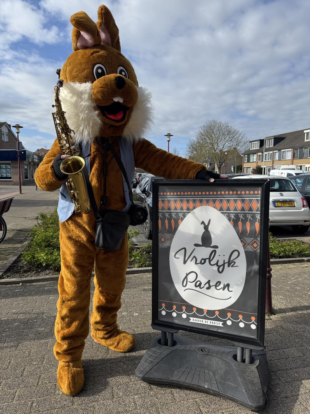 Op de foto zie je de Saxofoon Paashaas tijdens zijn optreden op de weekmarkt in Diemen, waar hij optrad voor MACentertainment. Zijn geweldige muziek maakte de dag voor de aanwezigen echt bijzonder. Dit soort momenten zijn precies waarom de Saxofoon Paashaas zo geliefd is op elk evenement. Hij voegt niet alleen muziek toe, maar brengt een stukje magie van Pasen naar je gasten.