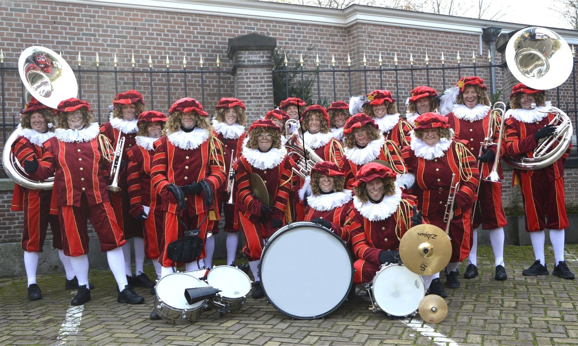 Roetveeg Pietenband in Zwart-Rode Pietenpakken: Feestelijke Muziek voor Elk Evenement!